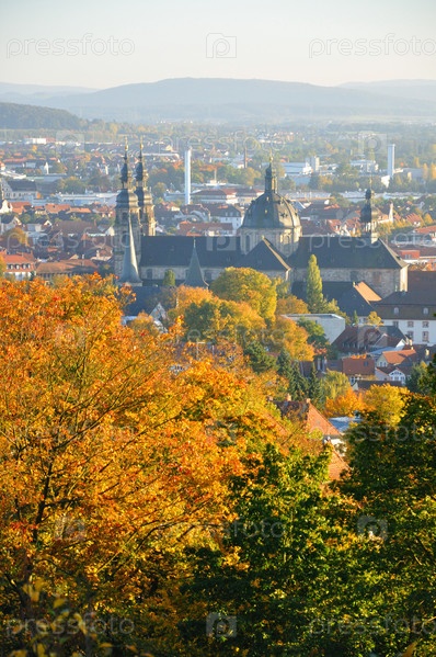 Вид Домского собора с горы Фрауенберг в Фульде, Гессен, Германия