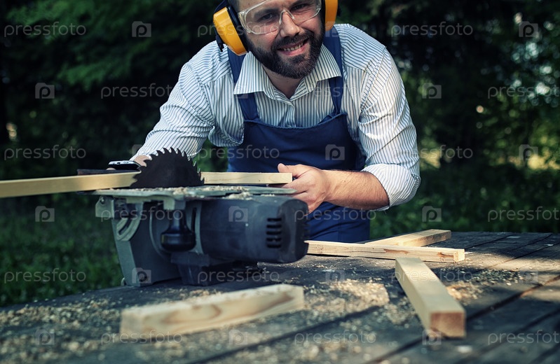 Мужчина работает с циркулярной пилой