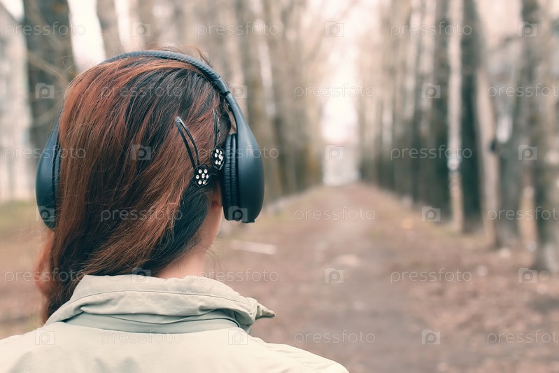 Девушка в парке с наушниками
