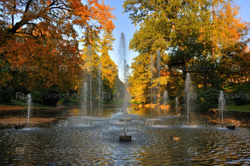 Осенние фонтаны в парке Stadtschloss в Германии, Гессень, Германия