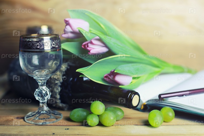 Вино, цветы и виноград