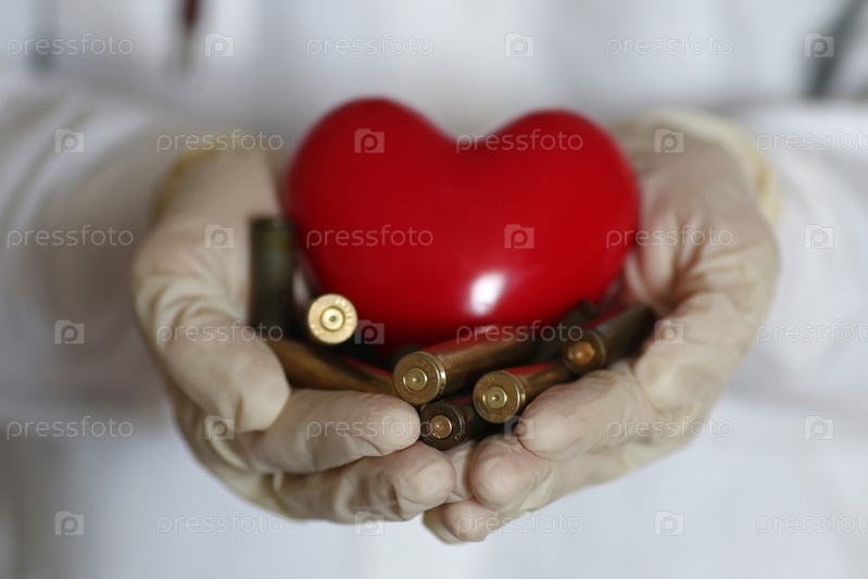 Сердце и пули в руке врача
