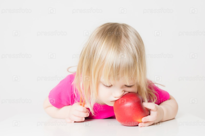 Очаровательная девочка с яблоком и соломинкой