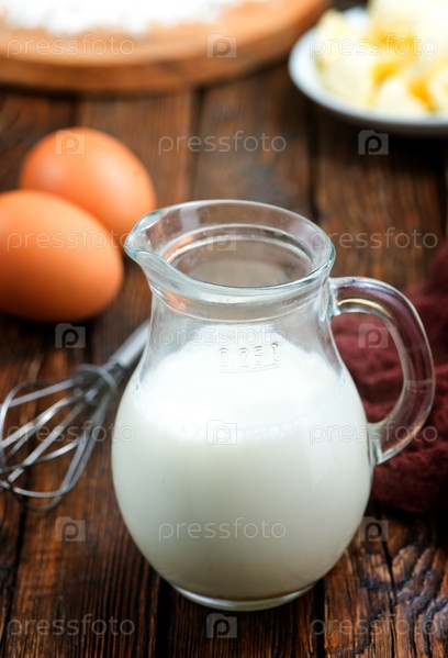 Мука, молоко, сливочное масло и яйца