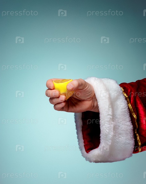 Рука Санта-Клауса сжумает лимон
