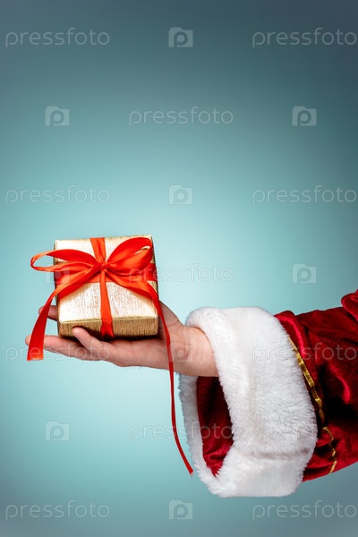 Рука Санта-Клауса держит подарок