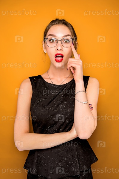 Эмоциональная девушка в очках