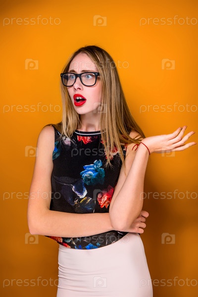 Эмоциональная девушка в очках