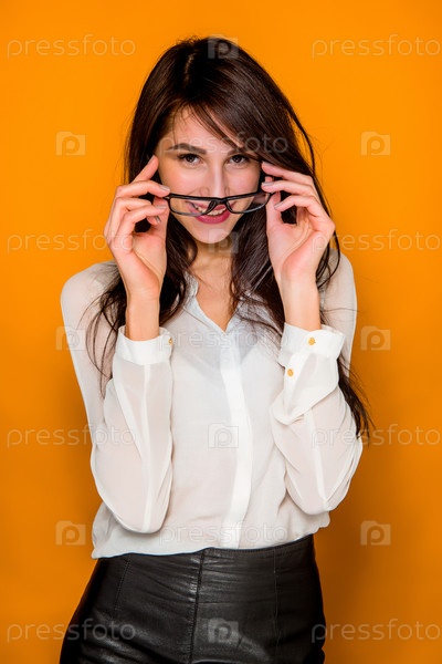 Эмоциональная девушка в очках