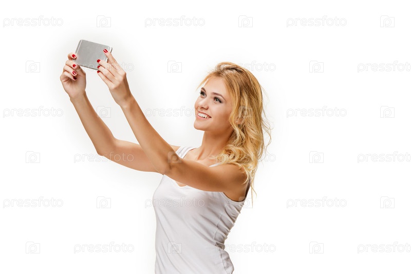 Красивая блондинка со смартфоном