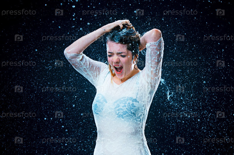 Молодая девушка под дождем