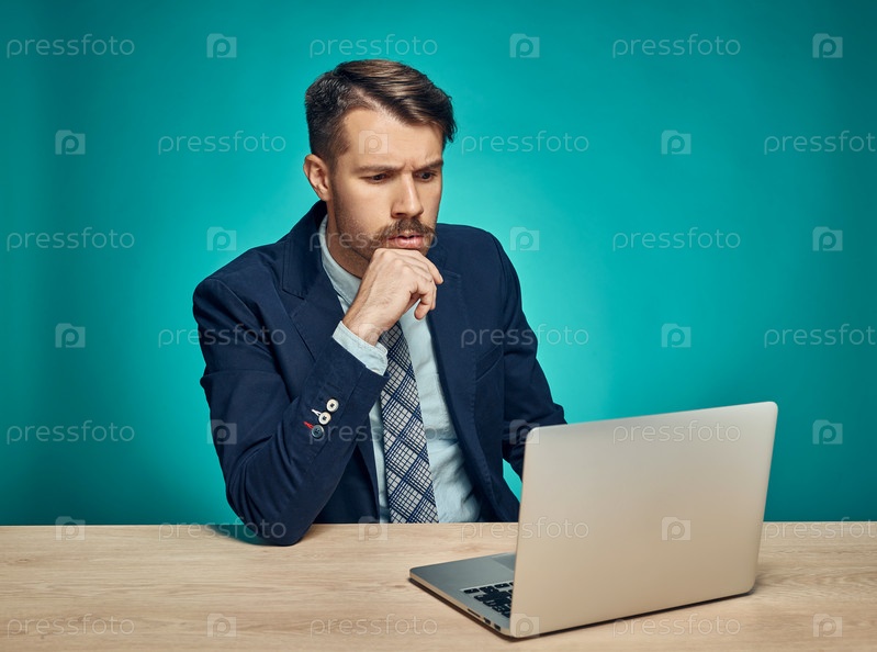 Серьезный бизнесмен с ноутбуком