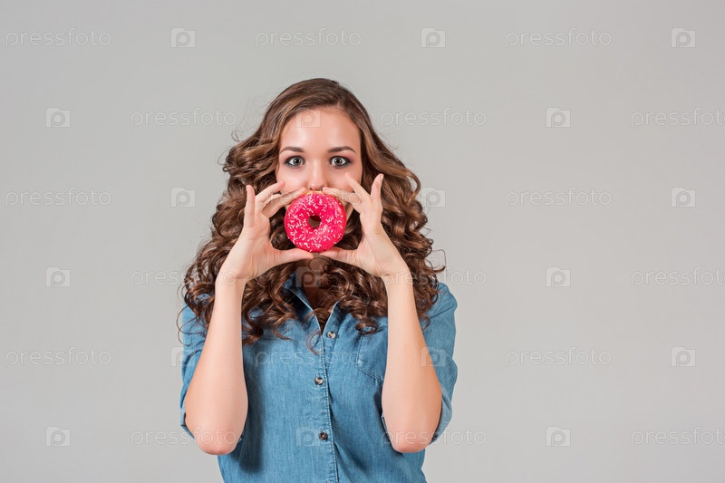 Красивая девушка с пончиком