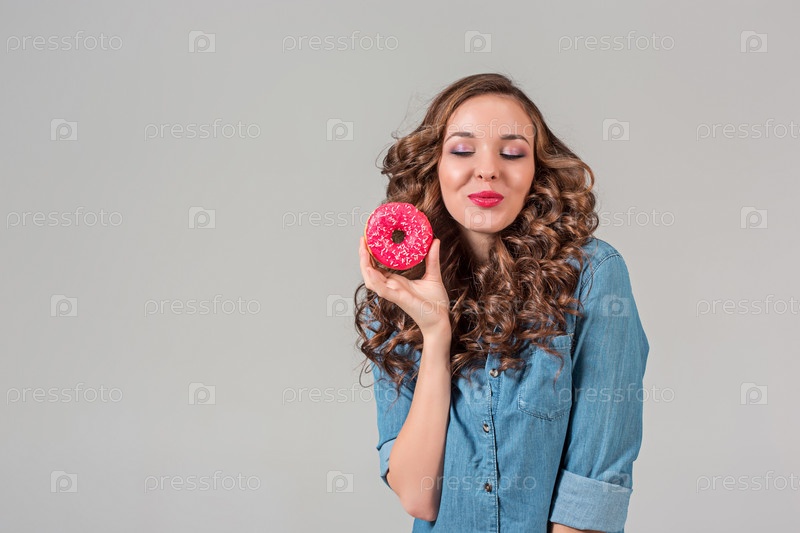 Красивая девушка с пончиком