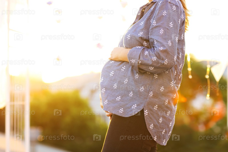 Беременная женщина на фоне города