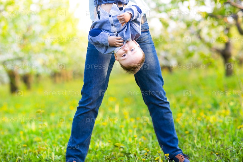 Маленький мальчик с матерью в цветущем саду