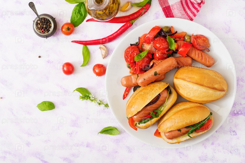 Хот-дог с колбасой и овощами