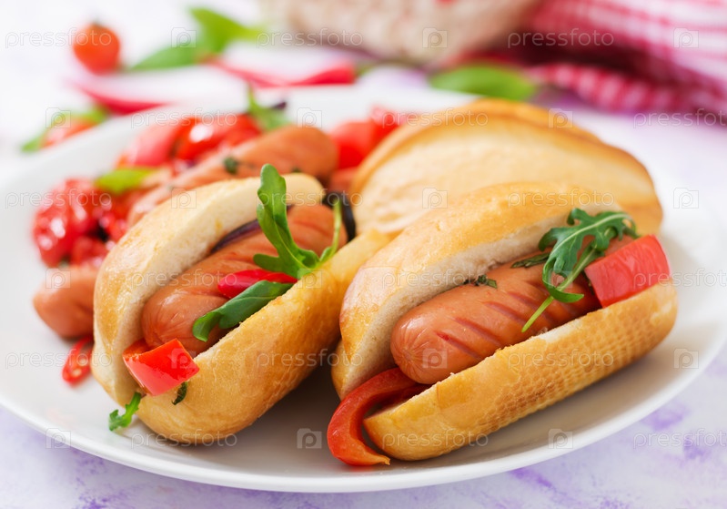 Хот-дог с колбасой и овощами