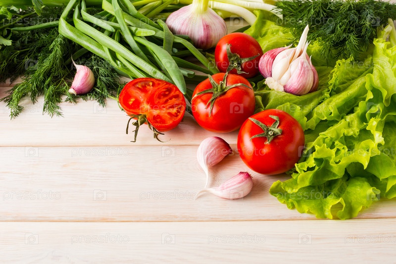Свежие помидоры, чеснок и зелень