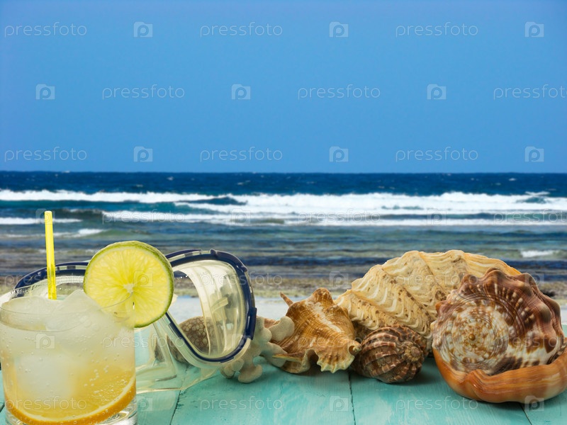 Ракушек и пляжный коктейль