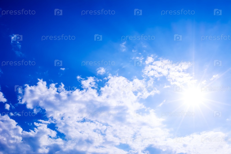 Синее небо с пушистыми облаками