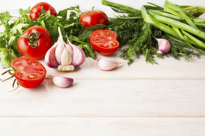 Чеснок, зелень и помидоры