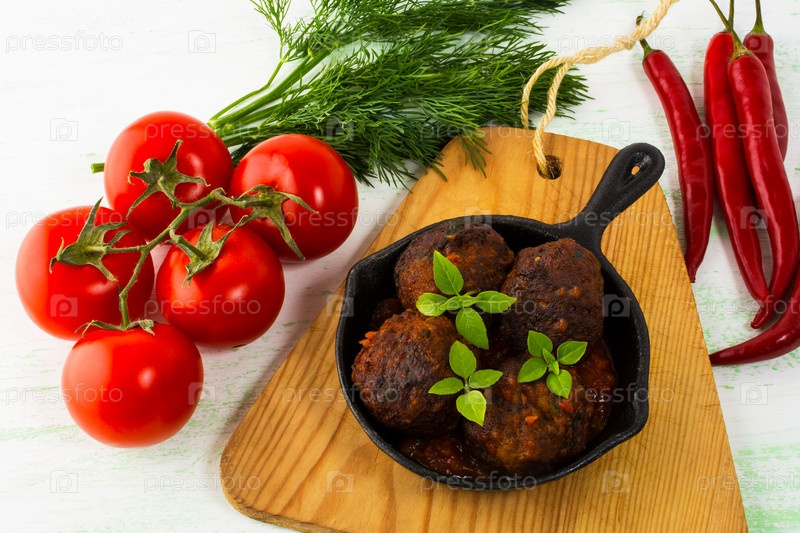 Жареные фрикадельки с перцем и помидорами