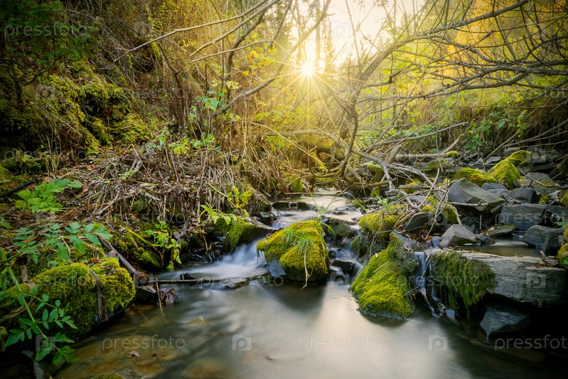 Красивый пейзаж с ручьем