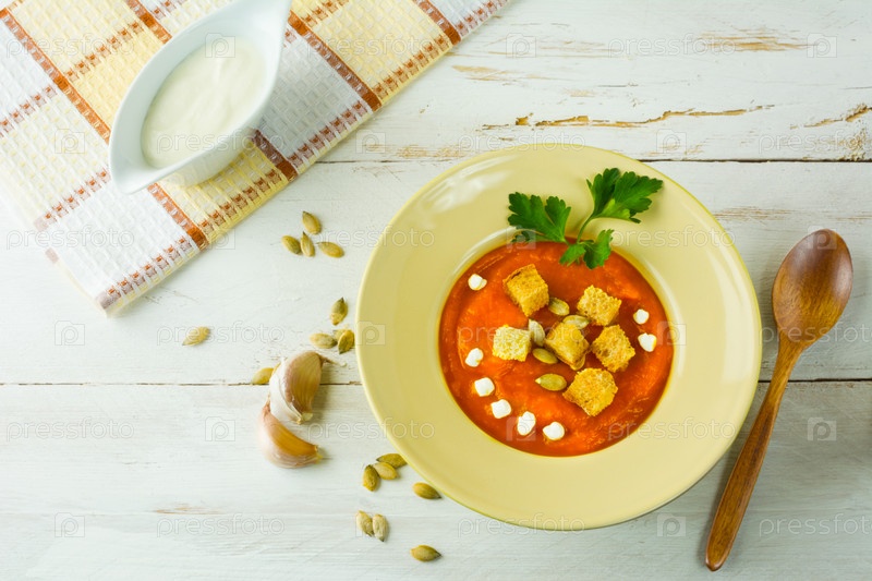 Сливочный суп из тыквы с чесночными гренками