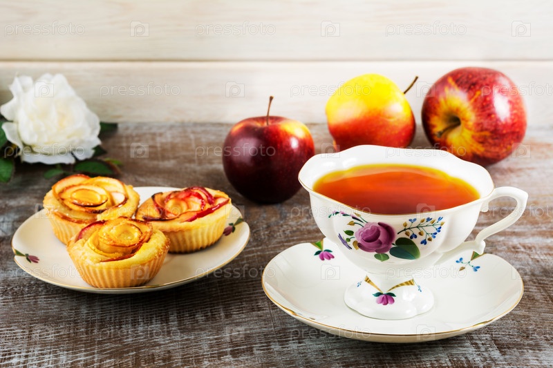 Чашка чая и десерт
