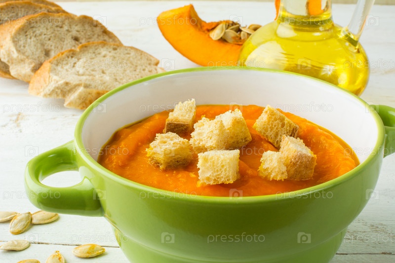 Сливочный тыквенный суп с гренками