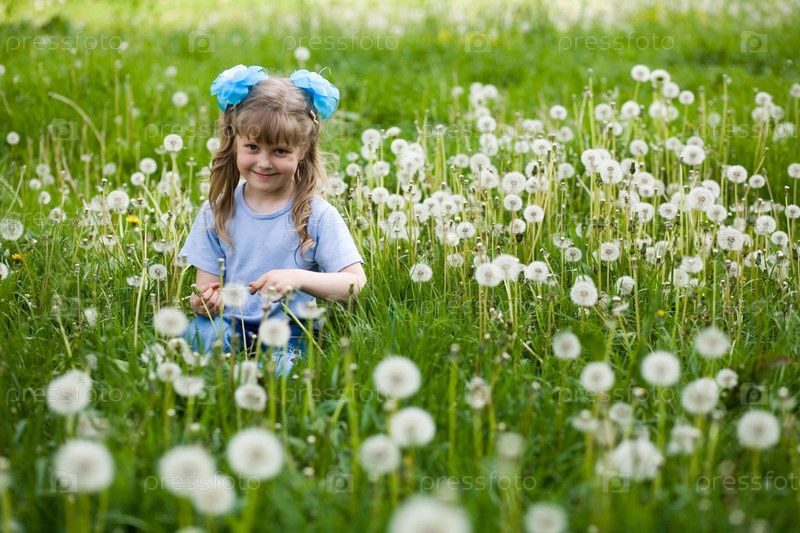 Девочка на поле одуванчиков