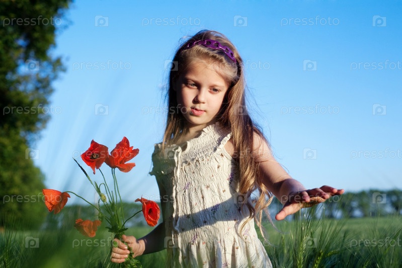 Девочка с маками в руках