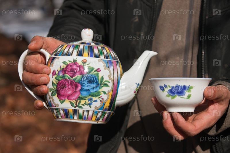 Чайник и чаша в руках