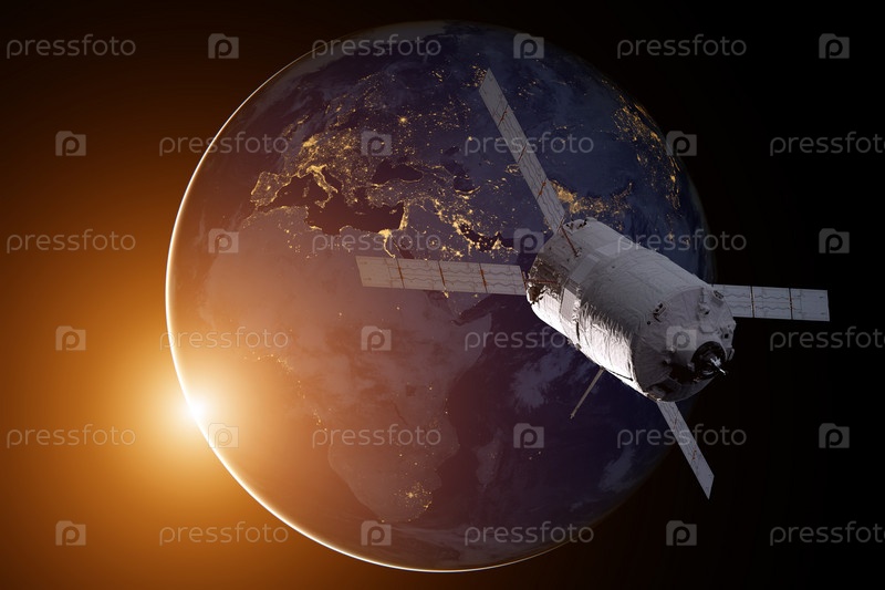 Грузовой космический корабль у планеты Земля