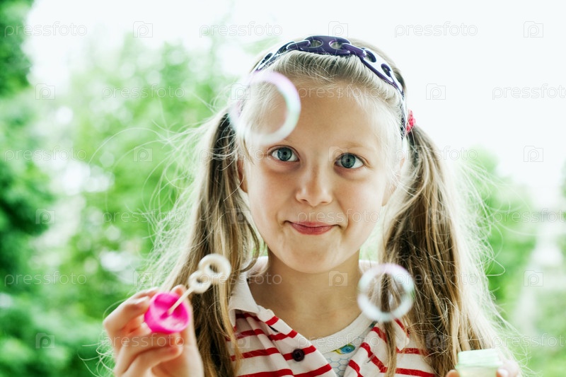 Девочка пускает мыльные пузыри