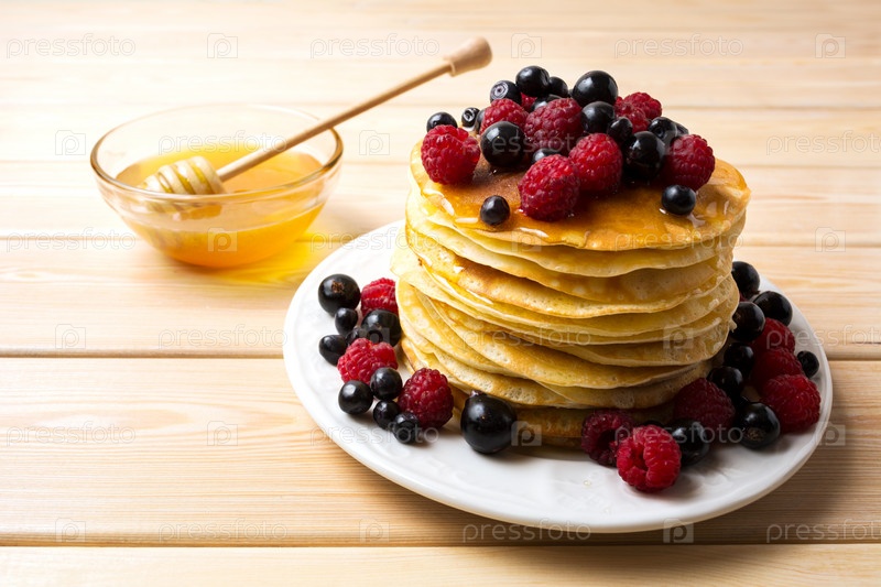 Домашние блинчики с медом и свежими ягодами