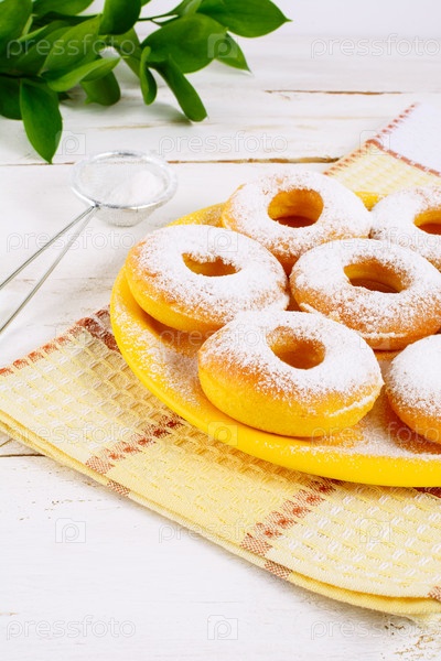 Сладкие пончики с сахарной пудрой