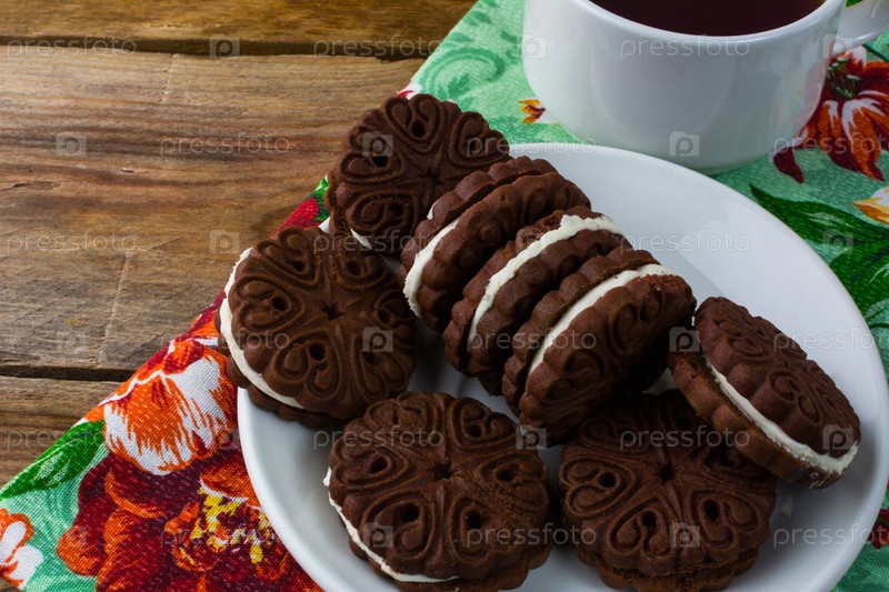 Печенье шоколадное и чашка чая
