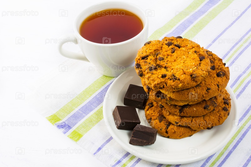 Домашнее печенье, шоколад и чашка чая