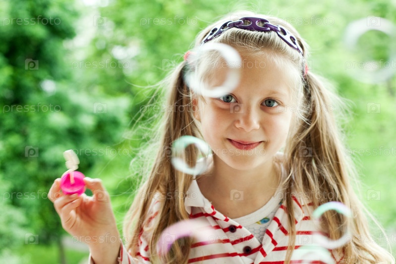 Девочка пускает мыльные пузыри