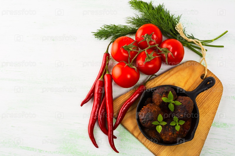 Жареные фрикадельки со свежими овощами