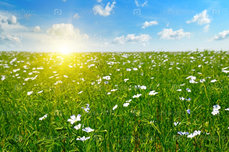 Поле с цветущим льном