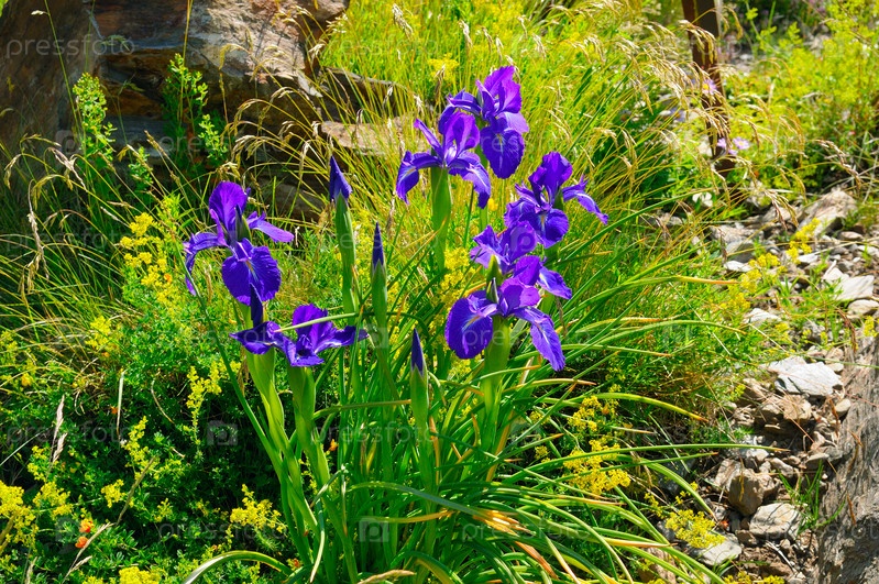 Цветы ирисы на альпийском лугу