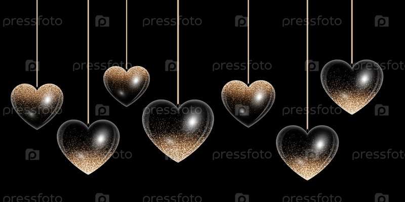 Набор сверкающих сердец с золотыми бликами