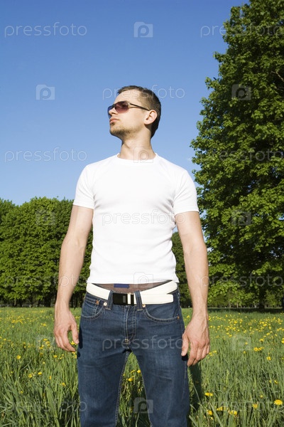 Мужчина в солнцезащитных очках в поле