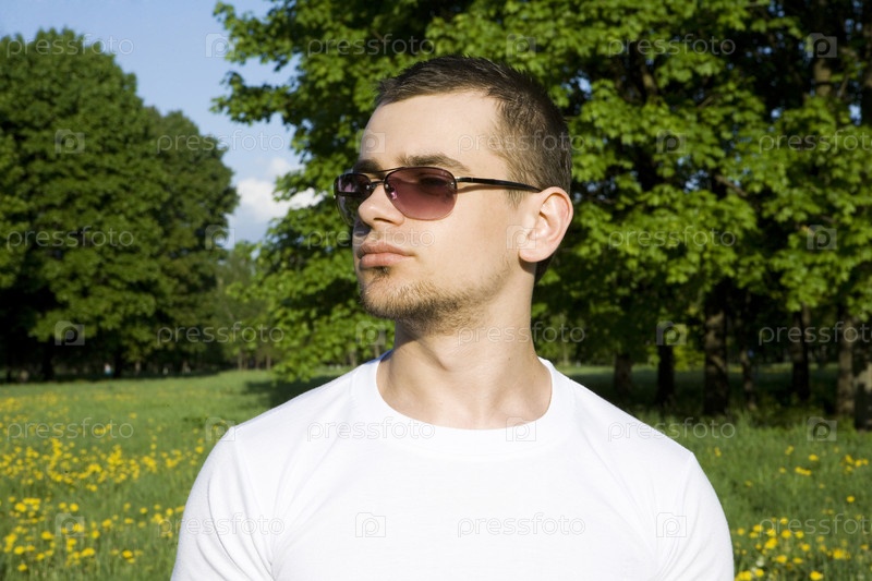 Мужчина в солнцезащитных очках на природе