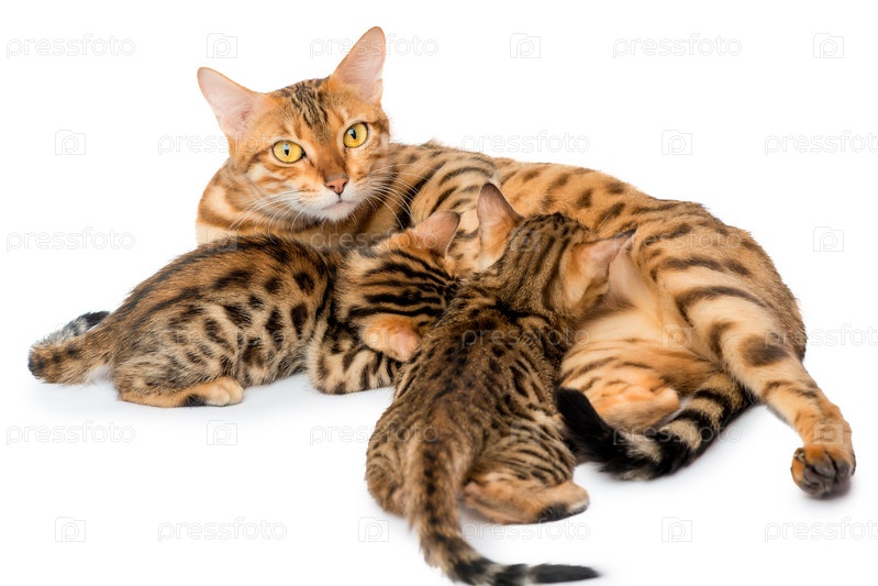 Бенгальская кошка с котятами