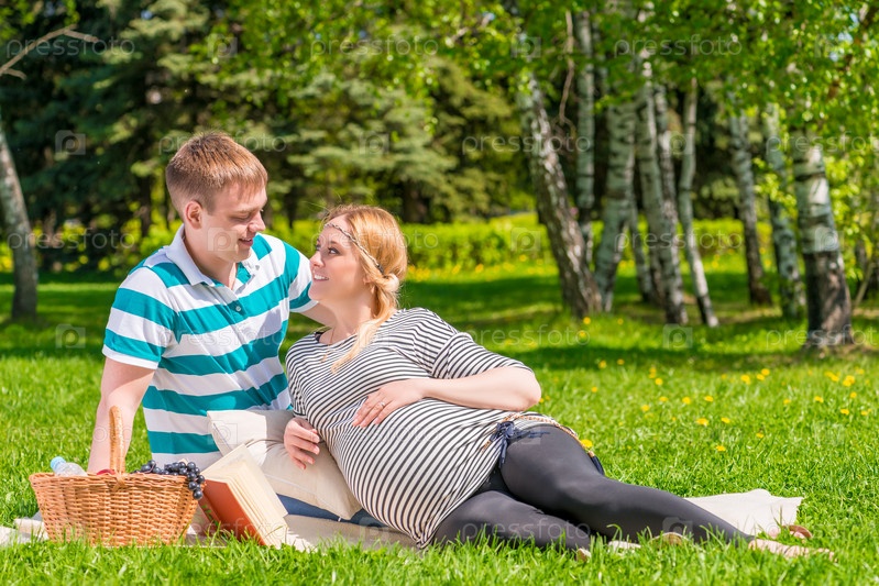 Беременная пара в парке
