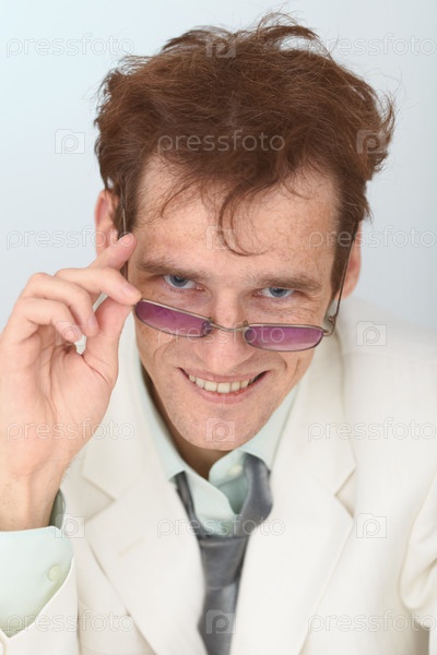 Портрет молодого человека, который смотрит на нас из-под очков и улыбается